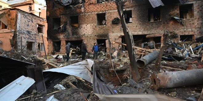 وكتب كليتشكو في برقية على “تيليغرام” الثلاثاء أن “ما لا يقل عن 10 أشخاص أُصيبوا في مبنى متعدد الطوابق في منطقة سولوميانسكي، عندما اندلع حريق بسبب هجوم صاروخي”.