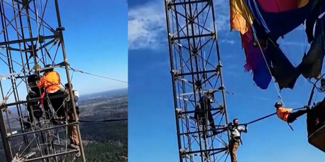 وأظهرت مقاطع مصورة تمزق قماش المنطاد والتفافه حول الهيكل المعدني للبرج. واستغرقت فرق الإنقاذ نحو ساعة للوصول إليهما عبر تسلق البرج، ثم قرابة ساعتين إضافيتين لإنزالهما بأمان.