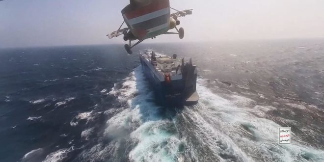 وقالت القيادة المركزية، في بيان عبر منصة إكس (تويتر سابقا)، إن “هذا الهجوم الثالث للحوثيين على سفينة شحن تجارية خلال 3 أيام”.