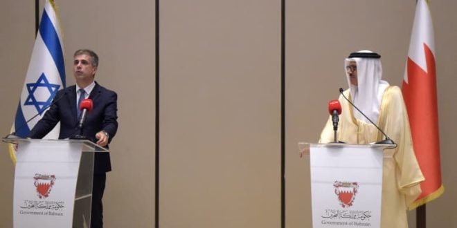 وعقد وزير خارجية إسرائيل ووزير خارجية البحرين مؤتمرا صحفيا بمناسبة زيارة كوهين إلى البحرين.