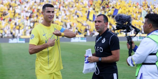 تفاعل مغرّدون على منصة “إكس” (تويتر سابقاً) مع لقطة طريفة بين علي البليهي، مدافع نادي الهلال، وكريستيانو رونالدو، لاعب نادي النصر، خلال مباراة الفريقين، السبت.