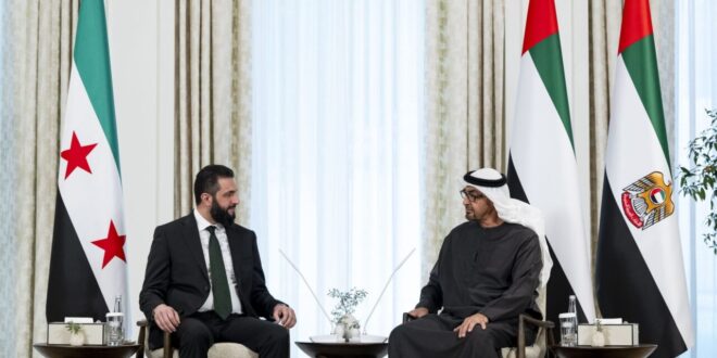وأضاف الشرع: "بحثنا القضايا الإقليمية والدولية ذات الاهتمام المشترك، وجدّدتُ وقوف سورية إلى جانب دولة الإمارات في حفظ أمنها واستقرارها".