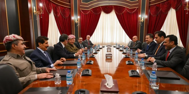 وجرى خلال اللقاء تسليط الضوء على الأوضاع السياسية في العراق، والخطوات المتعلقة بالعملية السياسية وانتخاب رئيس الجمهورية، إلى جانب تشكيل الحكومة العراقية الاتحادية الجديدة.