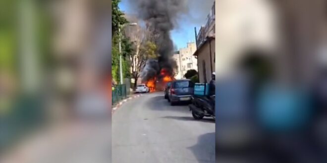 اشتعلت النيران في عدة سيارات وسط إسرائيل بعد سقوط شظايا صواريخ أطلقتها إيران في أحد الشوارع بمنطقة تل أبيب.