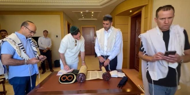 أقامت مجموعة من المسؤولين الإسرائيليين الزائرين، بمن فيهم وزير الاتصالات الإسرائيلي، صلاة للاحتفال بعيد العرش اليهودي بالعاصمة السعودية، الرياض، الثلاثاء.