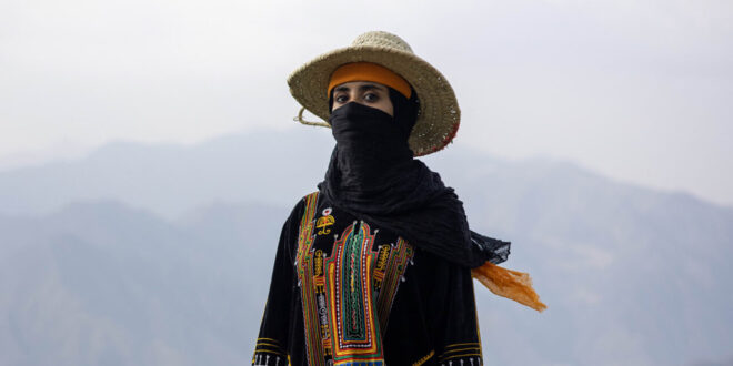— في صورةٍ ساحرة، تقف امرأة من المملكة العربية السعودية فوق الصخور المطلة على سهول عسير الخلابة، حافية القدمين، في مشهدٍ يجسد عمق ارتباطها بالأرض، سواءً بشكل حرفي أو رمزي.