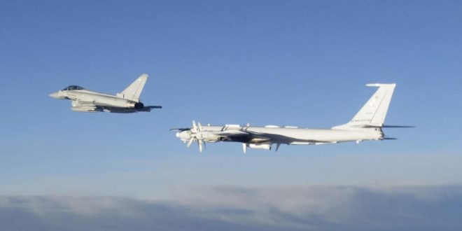 قالت وزارة الدفاع البريطانية، في بيان صحفي، إن طائرتين تابعتين لسلاح الجو الملكي البريطاني اعترضتا قاذفتين روسيتين للدوريات البحرية بعيدة المدى أثناء عبورهما شمالي اسكتلندا داخل منطقة الشرطة الجوية الشمالية لحلف شمال الأطلسي صباح الاثنين.
