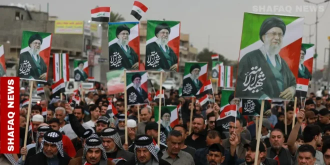 علم العراق وصور خامنئي.. مسيرات شعبية في بغداد دعماً لإيران (صور)