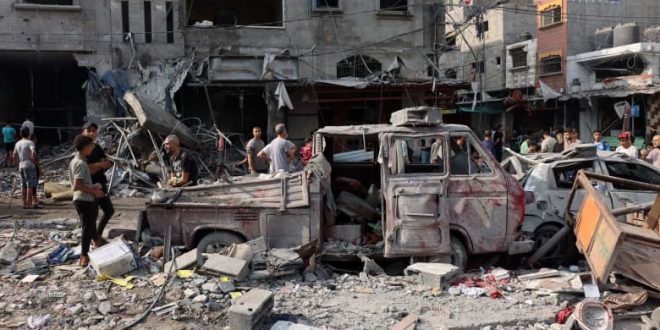 داخل غزة، المعزولة عن العالم بسبب حصار شبه كامل، دمرت الغارات الجوية الإسرائيلية أحياء بأكملها، ودمرت منازل ومدارس ومساجد. وأظهرت لقطات التقطتها طائرة بدون طيار ، الاثنين، مستوى الدمار في أجزاء من القطاع، حيث سويت شوارع بأكملها بالأرض في حي الرمال بمدينة غزة، وصف من المباني المدمرة المعروفة باسم أبراج الزهراء في وسط غزة.