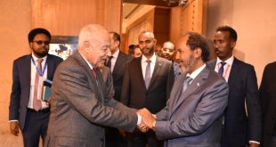 أكد الأمين العام لجامعة الدول العربية، أحمد أبو الغيط، الأحد، دعم الجامعة العربية للصومال في التحديات التي تواجهها بعد توقيع اتفاق بين إثيوبيا وإقليم “صومالي لاند” يمنح أديس أبابا إقامة قاعدة بحرية في الإقليم. والتقى أحمد أبو الغيط، مساء السبت، حسن شيخ محمود، رئيس الجمهورية الصومالية الفيدرالية، في مقر إقامته …