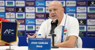 أقرّ مدرب المنتخب الوطني لكرة القدم داخل الصالات، جواو كارلوس باربوسا، يوم الأربعاء، بصعوبة مواجهة المنتخب الإيراني، مشيراً إلى أن المنتخب يطمح للوصول إلى نهائي كأس آسيا. وقال باربوسا، خلال المؤتمر الصحفي الخاص بمباراة الدور نصف النهائي لكأس آسيا لكرة الصالات، إن “المباراة ستكون صعبة وقوية”، مبيناً أن “المنتخب الإيراني …