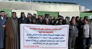 أكمل القراءة »تظاهر العشرات من مختاري كربلاء المقدسة، اليوم الخميس، أمام مكتب مجلس النواب للمطالبة بتعديل قانون المختارين. وقال مراسل الوكالة أن “العشرات من مختاري المحافظة عبروا عن احتجاجهم أمام مكتب مجلس النواب في المحافظة للمطالبة بتعديل قانون المختارين رقم (13) لسنة 2011، فضلًا عن المطالبة بتخصيص رواتب لهم وقطع أراض”. >