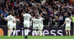 — فاز نادي ريال مدريد الإسباني على منافسه مانشستر سيتي الإنجليزي بثلاثة أهداف دون رد، في ملعب "سانتياغو برنابيو"، الأربعاء، بذهاب ثمن نهائي دوري أبطال أوروبا (تشامبيونزليغ). وسجّل فيديريكو فالفيردي أهداف فريق "الميرنغي"، عند الدقائق 20 و27 و42 من زمن المباراة. فيما تغلّب نادي باريس سان جيرمان الفرنسي على نظيره …