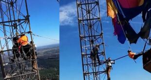 تمكنت إدارة إطفاء لونغفيو في شرق تكساس بالولايات المتحدة من إنقاذ رجل وامرأة بعد أن علق منطادهما في برج اتصالات على ارتفاع يزيد عن 280 مترًا. وأظهرت مقاطع مصورة تمزق…