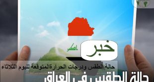 حالة الطقس ودرجات الحرارة المتوقعة لليوم الثلاثاء